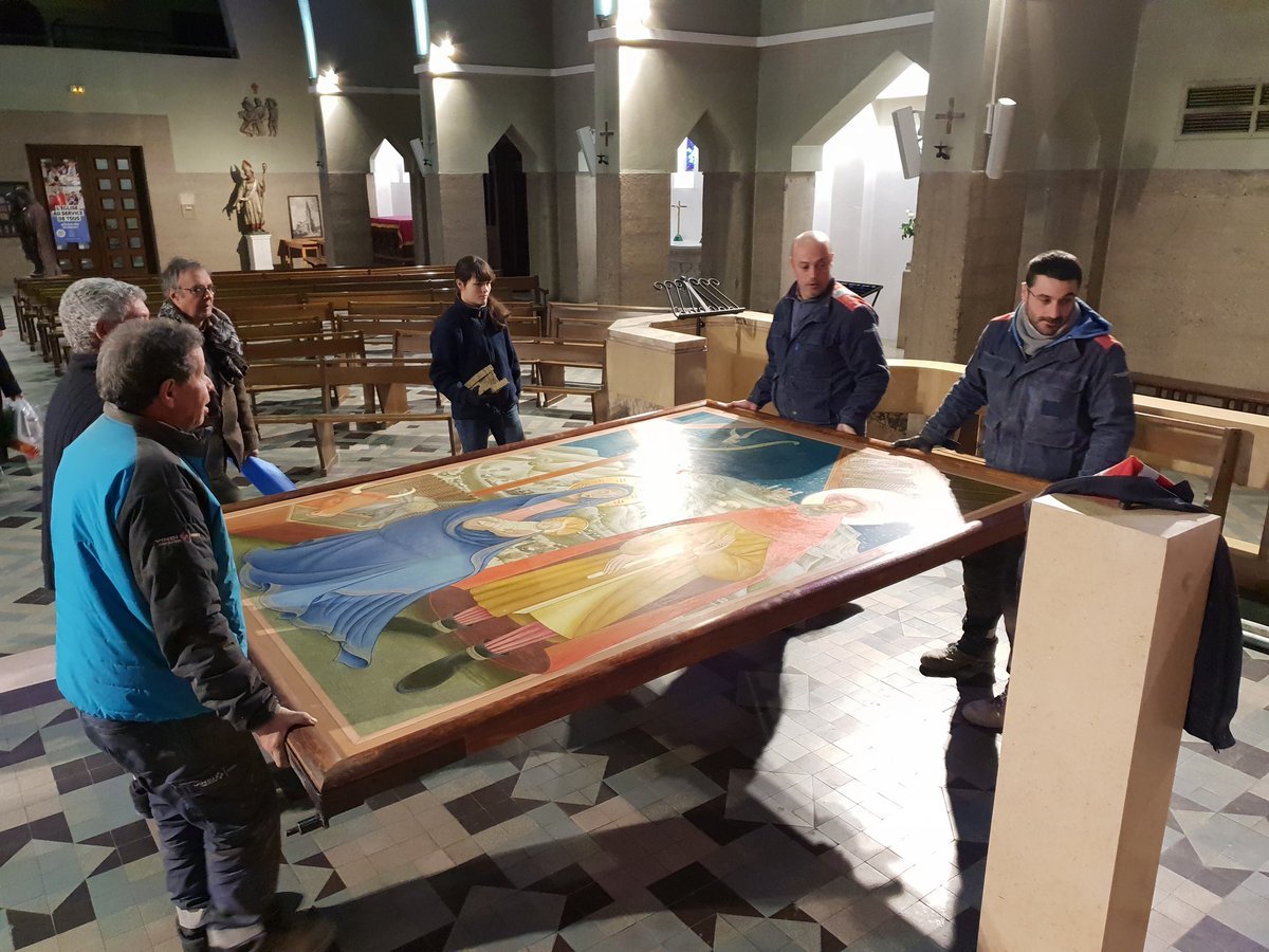 Après plusieurs mois de restauration et son financement par la fondation Saint-Irénée, le tableau de la "Nativité lyonnaise" de Jean Martin retrouve sa place dans l'église St Charles de Serin